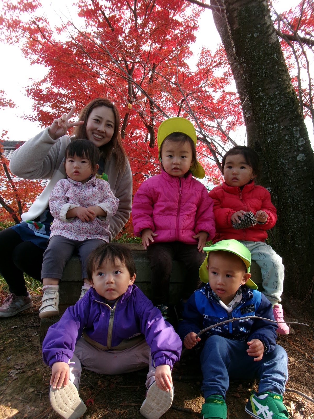 紅葉を見て「あっかーい!!」「きっきーー!!」